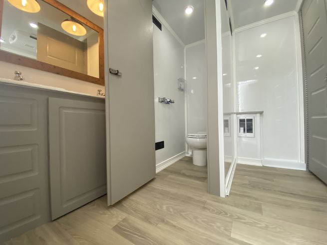 Elevate your event with our high-end VIP toilet trailers, providing comfort and convenience.